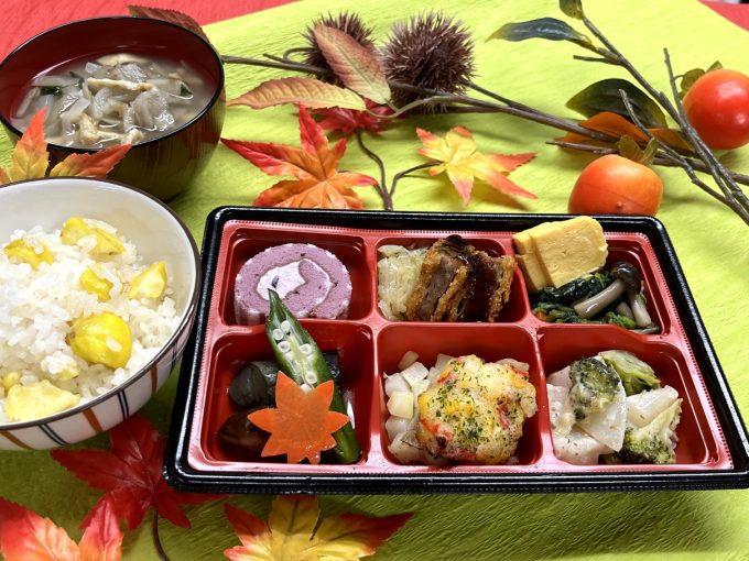おかずを6種詰めた秋の行楽弁当を提供しました😊